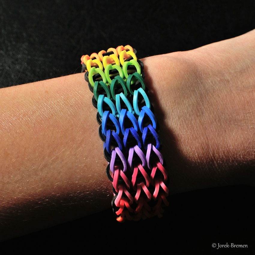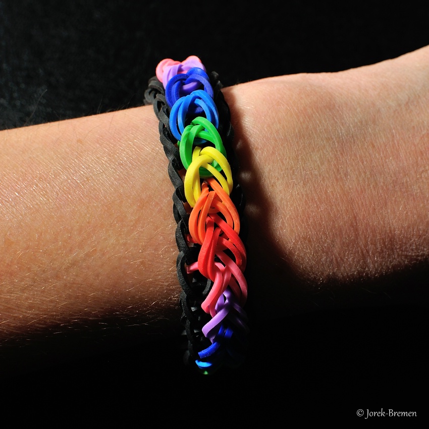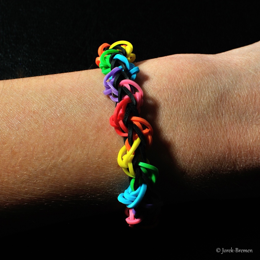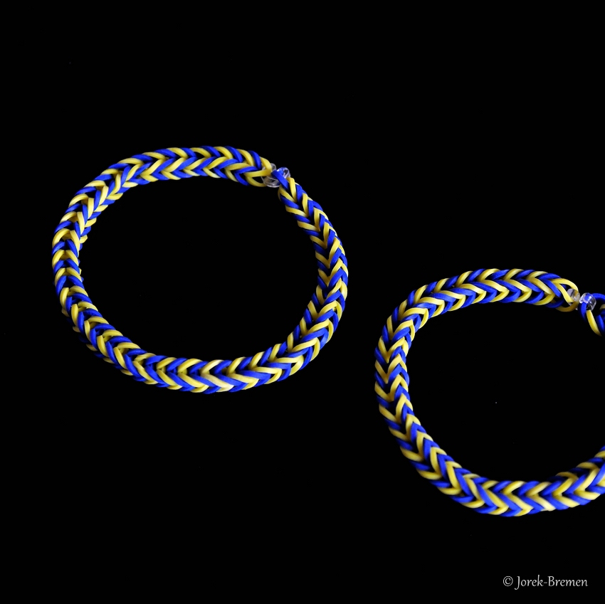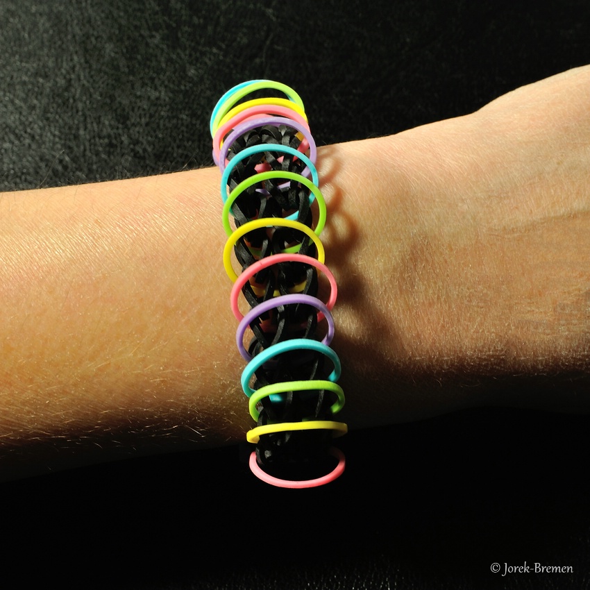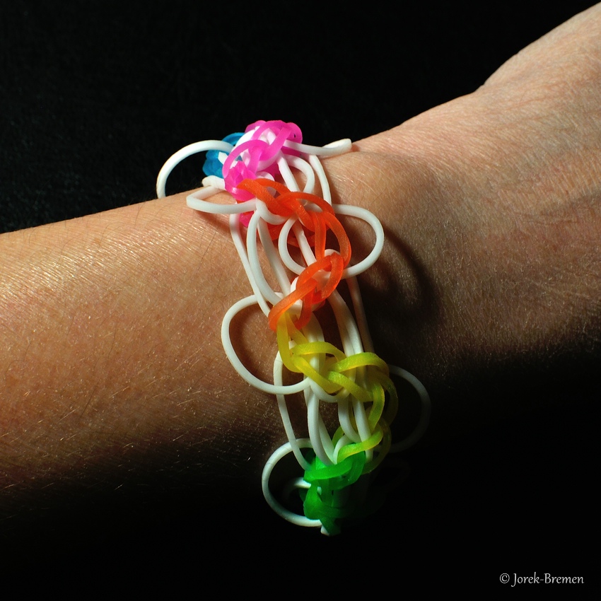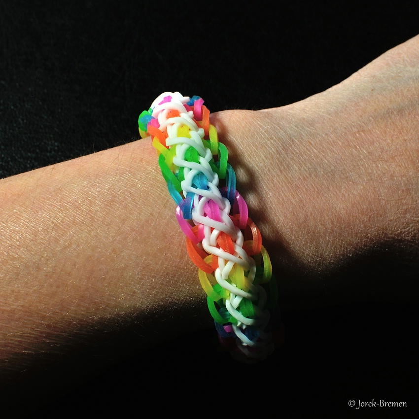 Auch der Hype mit dem Flechten der kleinen Gummibändchen ist an uns nicht spurlos vorüber gegangen. Unten zeigen wir eine kleine Auswahl der Produktion. Mittlerweile ist alles verkauft.